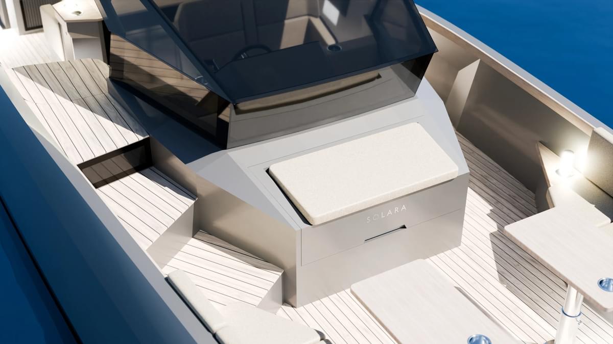 Elevating the boating experience to new heights, Solara 33 stands as an embodiment of Scandinavian design, sustainability, and groundbreaking technology. This disruptive new product category redefines the market for leisure boats, shattering the price barrier between electric boating and 30ft+ luxury vessels with traditional propulsion.